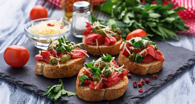 - Snij een knoflook teentje doormidden en wrijf over de toast.