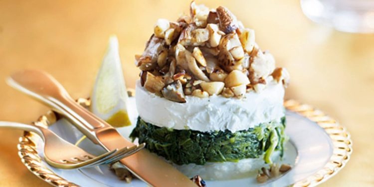 Ingrediënten 1 kleine knolselderij olijfolie 2 sjalotjes 200 gr gemengde paddenstoelen 50 gr amandelen, hazelnoten of cashewnoten zout peper 300 gr verse spinazie 100 gr zachte geitenkaas in 4 plakken […]